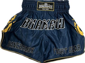Constructed from 100% polyester woven satin, these unisex Buakaw Banchamek boxing shorts provide superior comfort and durability.